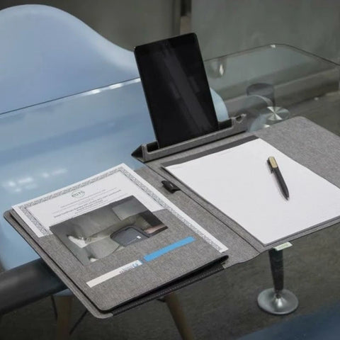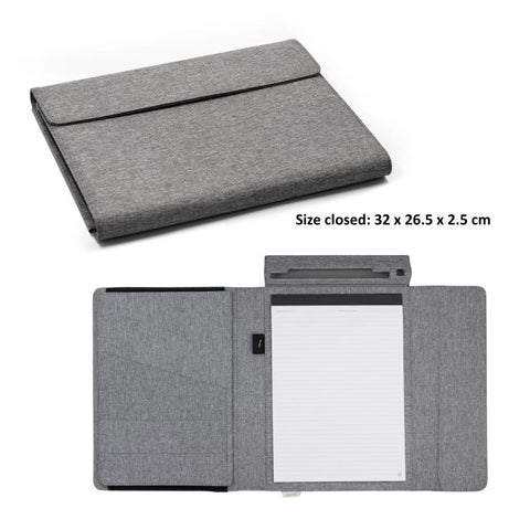 Transform any setting into a high-performance office with the Brand Charger Noty Folio Eco Sustainable Business Organizer, a masterpiece of functional design crafted fromĀ recycled RPET fabric. This versatile companion seamlessly transitions from a sleek document carrier to aĀ multi-angle tablet workstation, ensuring you stay productive during transit or in the boardroom. Featuring an integrated FSC certified paper A4 notepad, dedicated pen loop, specialist compartments to keep your business card or travel document and a expandable storage pockets for tablet or laptop up to 13 inch, it keeps your digital and analog essentials perfectly synchronized. Its minimalist aestheticĀ offer a sophisticated lifestyle upgrade for the modern professional who values both sustainability and peak efficiency.