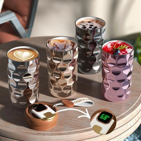 Elevate your morning ritual with a vessel that bridges the gap between high-fashion aesthetics and technical performance. The Ceramic Coffee Mug with Temperature Display features a strikingĀ dimpled mirror-finish exteriorĀ that captures the light, paired with aĀ premium ceramic interiorĀ to preserve the pure taste of your beverage without metallic interference. Designed for the discerning professional, itsĀ vacuum-insulated stainless steel coreĀ maintains optimal temperatures for hours, while theĀ integrated woven carry strapĀ andĀ leak-proof lidĀ offer effortless portability. Whether transitioning from a morning commute to a high-stakes meeting, this tumbler ensures your coffee stays hot and your style remains impeccable.