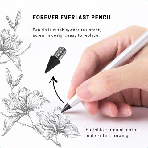 Simplify your stationery collection with the Forever Everlast Pencil, a revolutionary long-lasting writing solution designed to abandon the constraints of traditional pencil. This innovative eternal pencil utilizes a new generation alloy nib with a unique carbon-zinc alloy formula. Through friction, the nib leaves smooth, precise marks on paper, perfectly mimicking a standard HB pencil trace without ever needing sharpening. As a durable writing tool, this reusable pencil alternative is completely safe and non-toxic, ensuring a reliable writing experience free from heavy metals like lead.