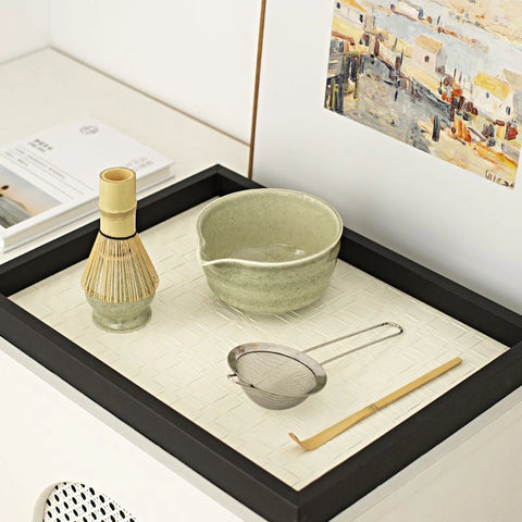 Set Includes: Matcha Bowl, Bamboo Whisk, Whisk Holder, Matcha Scoop, Scoop Restļ¼ Stainless Steel Sifter, and Tea Mat