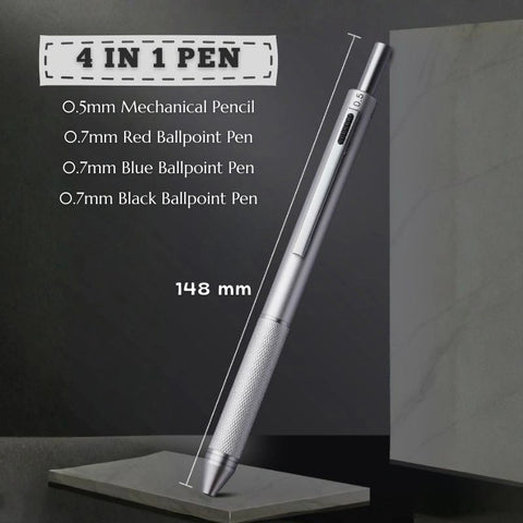 Simplify your stationery with the Multi-colour Executive Metallic Gravity Pen, a sleek and durable pen designed to solve various writing needs with a single tool. This pen contains multiple colors and functions, ensuring versatility for notes, documents, and creative work. It features a precise 0.5mm mechanical pencilĀ and three smooth 0.7mm ballpoint pens in essential colours: red, blue, and black. The executive metallic body provides a comfortable, balanced feel for smooth operation and durable construction, making this pen a reliable and efficient addition to your daily carry.