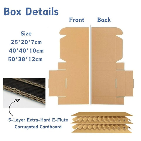 Features: Foldable "Ear-Lock" design, 5-Layer Extra-Hard E-Flute Corrugated Cardboard